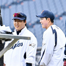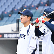2026.03.15 11: 17강백호-채은성,'비 맞으며 즐겁게'