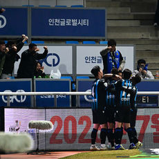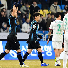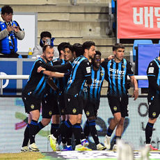 무고사 동점골에 기뻐하는 인천