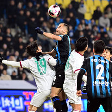 이진용-오베르단, 한치 양보없는 헤딩 경합