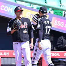 2026.03.19 13: 43LG 돌아온 송승기-박해민, '환한 미소로'