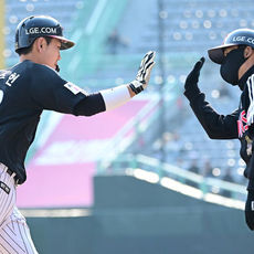 2026.03.20 15: 56LG 이주헌, '시범경기 투런포 하이파이브'
