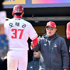 2026.03.20 15: 06오태곤 득점 반기는 SSG 이숭용 감독